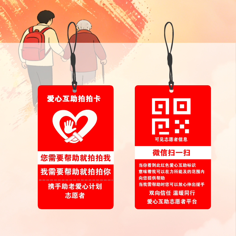 • 志愿者专属二维码爱心互助拍拍卡1张